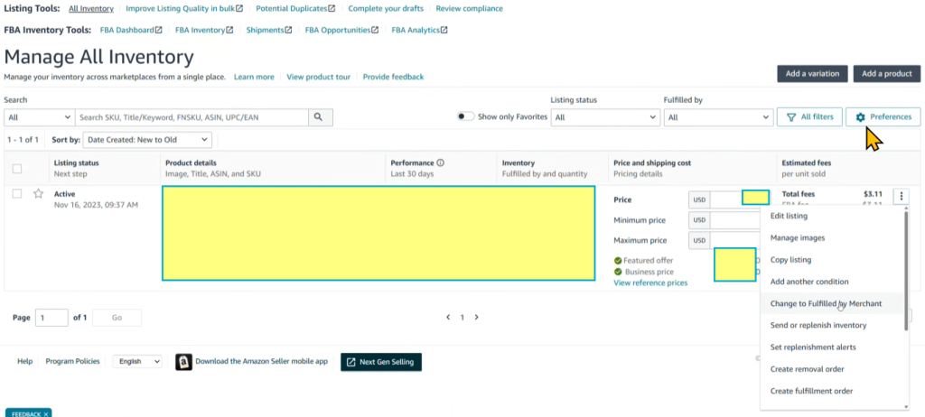 4/ (Với sản phẩm mới) Chuyển trạng thái FBA sang FBM