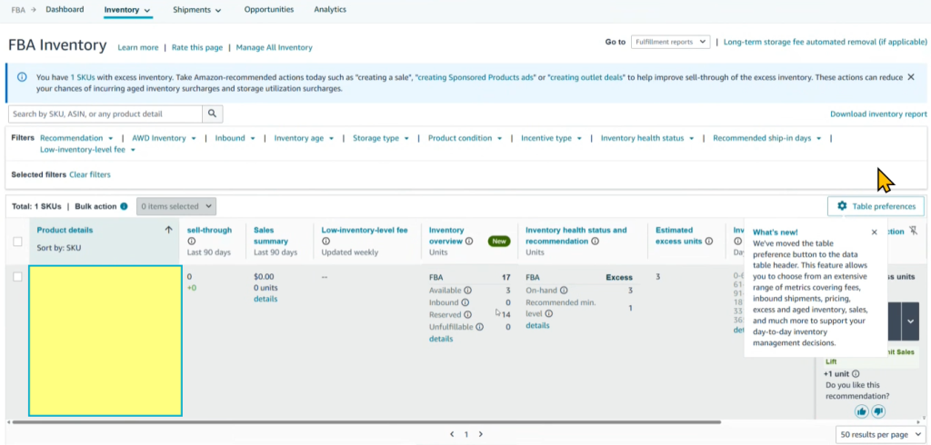 FBA Inventory -> giám sát số hàng vào kho
