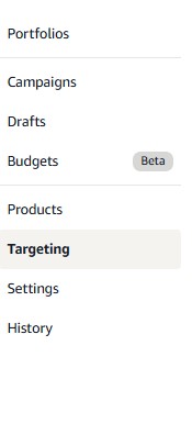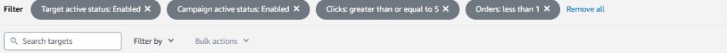 - Seller Central> Menu>Advertising>Campaign Manager>Targeting > Filter by