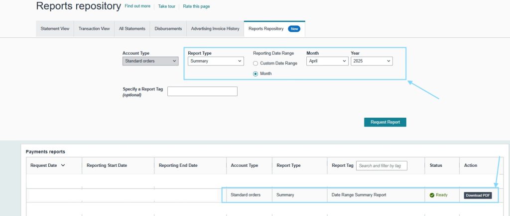 Sau đó, Seller bấm vào ‘Generate report’ > Download