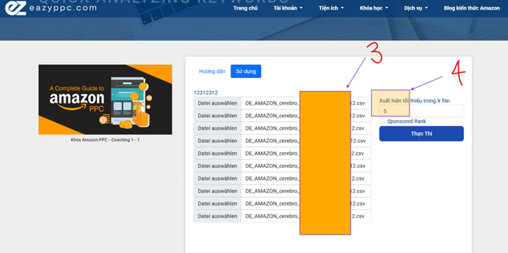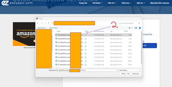 Tải 10 file CSV vào công cụ Eazyppc>Tiện ích>‘Quick analyzing keywords’, chạy phân tích, và nhận file CSV tổng hợp ‘amazon_Compare_kw’.