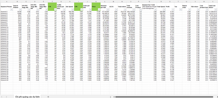 Như đã đề cập về vai trò của từ khóa & giá thầu từ khóa trong các bài trước, chi phí quảng cáo dự kiến sẽ được tính toán dựa trên từng từ khóa và giá thầu của chúng. Eazyppc sẽ hướng dẫn bạn dự phóng kết đầy đủ các chỉ số dựa trên từng từ khóa trong bộ từ khóa cốt lõi – từ đó, bạn có thể tổng hợp lại để có thể lập kế hoạch kinh doanh chi tiết.