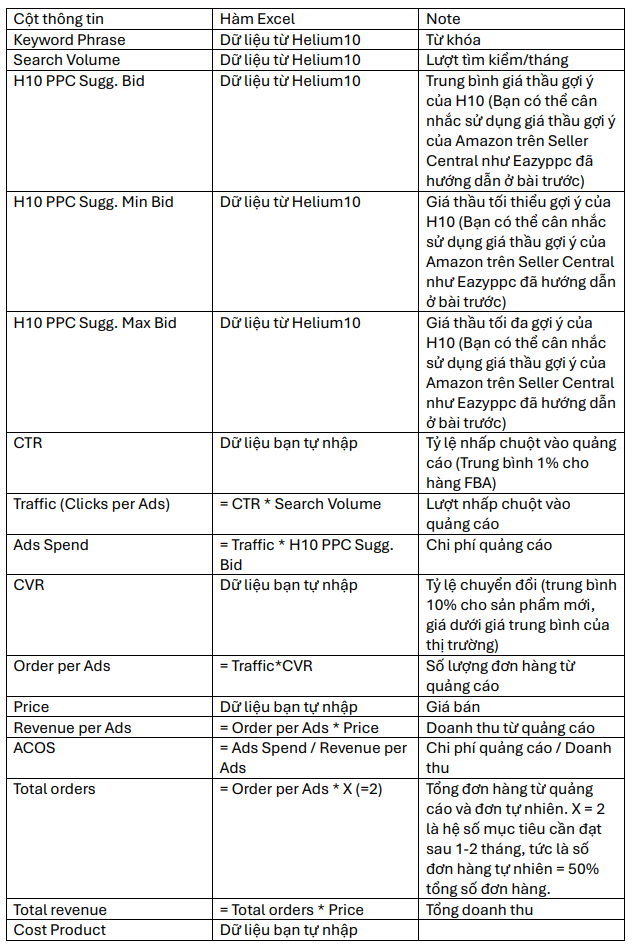 Từ bảng Excel này, bạn có thể điều chỉnh để tổng hợp những thông tin dự phóng kết quả kinh doanh & chi phí quảng cáo. Còn 1 số loại chi phí khác, Eazyppc sẽ đề cập trong bài ‘Kế hoạch tài chính của sản phẩm’ cụ thể hơn.