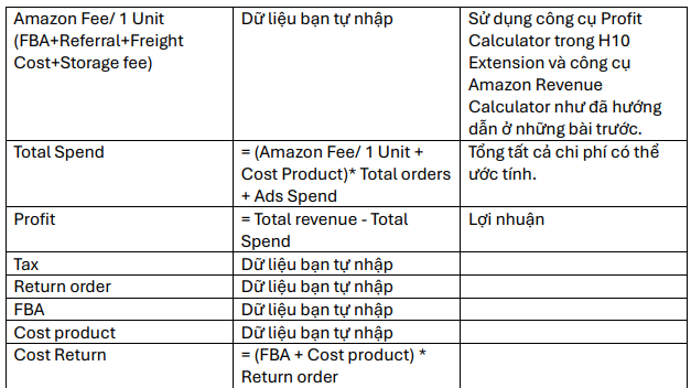 Sau đó, lập bảng Excel như hướng dẫn sau để tính toán chi phí: