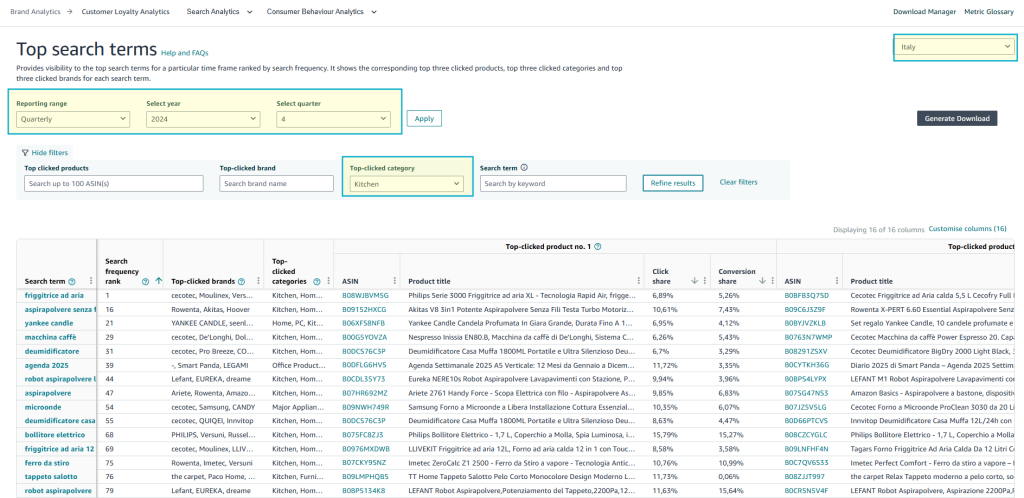 Với Seller đã kinh doanh trên Amazon, công cụ Brand Analytics có lẽ đã trong lòng bàn tay, đặc biệt trong việc phân tích phễu chuyển đổi hoặc thu thập từ khóa. Tuy nhiên, một ứng dụng quan trọng khác của công cụ này khá hữu dụng – đó là tìm kiếm sản phẩm tiềm năng và kiểm tra yếu tố mùa vụ.