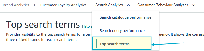 1/ Truy cập và sử dụng mục “Top Search Terms” trong Brand Analytics