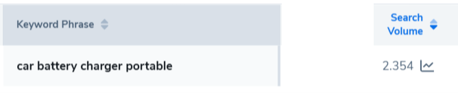 When searching for the keyword ‘car battery charger portable’ on Helium10, we get the following results: