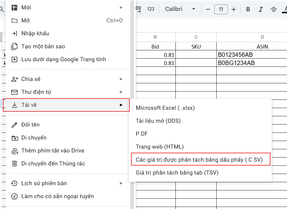 Tải file CSV về